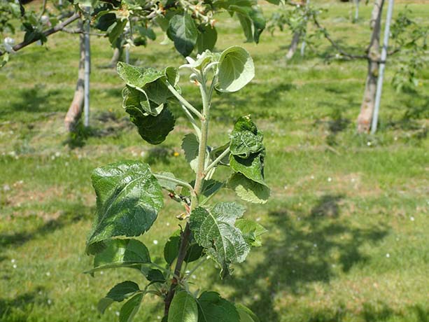 6月にリンゴから姿を消すので実害は少ない。発生が著しく多い場合は、薬剤を散布する。